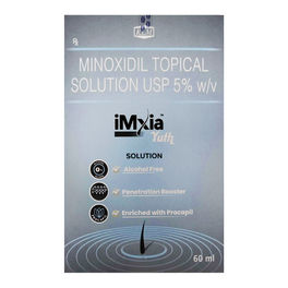 About Imxia Yuth Topical Solution Imxia Yuth Topical Solution belongs to the class of vasodilators used to treat alopecia (hair loss). Imxia Yuth Topical Solution stimulates hair growth and slows down the process of balding. Alopecia is the thinning or loss of hair on the scalp or any part of the body. Imxia Yuth Topical Solution contains Minoxidil, a vasodilator that widens the blood vessels. This vasodilation process helps provide oxygen, blood, and nutrients to the hair follicles, thereby preventing hair cell death and promoting new hair growth. Your doctor will suggest the dose and duration based on your condition. Some common side effects of Imxia Yuth Topical Solution include changes in the colour/texture of the hair, excessive hair growth, headache, itching, skin irritation, dryness, shortness of breath, scaling of the skin, and redness. These side effects usually do not require medical attention and gradually resolve during the treatment. If the side effects persist or worsen, consult a doctor. Do not apply Imxia Yuth Topical Solution to shaved, inflamed, infected, irritated, or painful scalp skin. Before using Imxia Yuth Topical Solution, let your doctor know if you have high blood pressure, sunburn, eczema, psoriasis, heart diseases like angina (chest pain), a recent heart attack, and circulation disorders. Imxia Yuth Topical Solution not recommended for pregnant and breastfeeding women. Imxia Yuth Topical Solution may cause dizziness, affecting your driving ability; hence, avoid driving or operating machinery until you are alert. Children and adolescents below 18 years should not use Imxia Yuth Topical Solution.