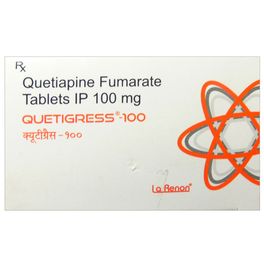 About Quetigress 100 mg Tablet Quetigress 100 mg Tablet belongs to a group of medications called antipsychotics. It is used in the treatment of bipolar depression, mania and schizophrenia. Bipolar disorder is characterized by manic episodes of excitement or euphoria and depression. Schizophrenia is characterized by symptoms of hallucinations (seeing or hearing things that are not real) and delusions (wrong beliefs). Quetigress 100 mg Tablet contains quetiapine, which is an antipsychotic drug. It acts by blocking dopamine, a hormone in the brain responsible for developing symptoms of schizophrenia and bipolar disorder. Quetigress 100 mg Tablet also affects other neurotransmitters in the brain, such as serotonin, and its beneficial effects may also be related to this. Altogether Quetigress 100 mg Tablet rebalances dopamine and serotonin to improve thinking, mood and behaviour. Quetigress 100 mg Tablet should be taken as prescribed by the doctor. Common side-effects of Quetigress 100 mg Tablet are dizziness, drowsiness, headache, dry mouth, abnormal muscle movements such as difficulty moving muscles, tremors and muscle stiffness, change in cholesterol levels, weight gain, and decrease in haemoglobin (protein in blood that carries oxygen) levels. Additionally, in children and adolescents, swelling of breasts in boys and girls and production of breast milk (due to an increase in prolactin hormone (helps in producing breast milk)) and irregular menstruation can be seen. Please do not stop taking Quetigress 100 mg Tablet without your doctors advice, as it may lead to withdrawal symptoms. Do not take Quetigress 100 mg Tablet if you are allergic to quetiapine or any other ingredients present in it. Before taking Quetigress 100 mg Tablet , inform your doctor if you have problems associated with the liver, kidney or heart. Also, inform your doctor if you have any sleeping difficulties. It is not recommended for use in children under 18 years of age. Tell your doctor immediately if you develop suicidal thoughts, or your depression worsens after taking Quetigress 100 mg Tablet . Quetigress 100 mg Tablet contains lactose, so it should not be given to people who are intolerant to some sugars. Tell your doctor if you are pregnant or breastfeeding.