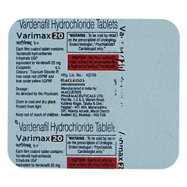 Varimax 20 Tablet contains vardenafil, which works by relaxing the blood vessels in the penis, thereby allowing the blood to flow into the penis when the person is sexually excited. It reduces the action of natural chemicals in the body, which makes erections go away. Thereby, Varimax 20 Tablet helps treat erectile dysfunction. Varimax 20 Tablet helps the person to get an erection only if he is sexually stimulated.
